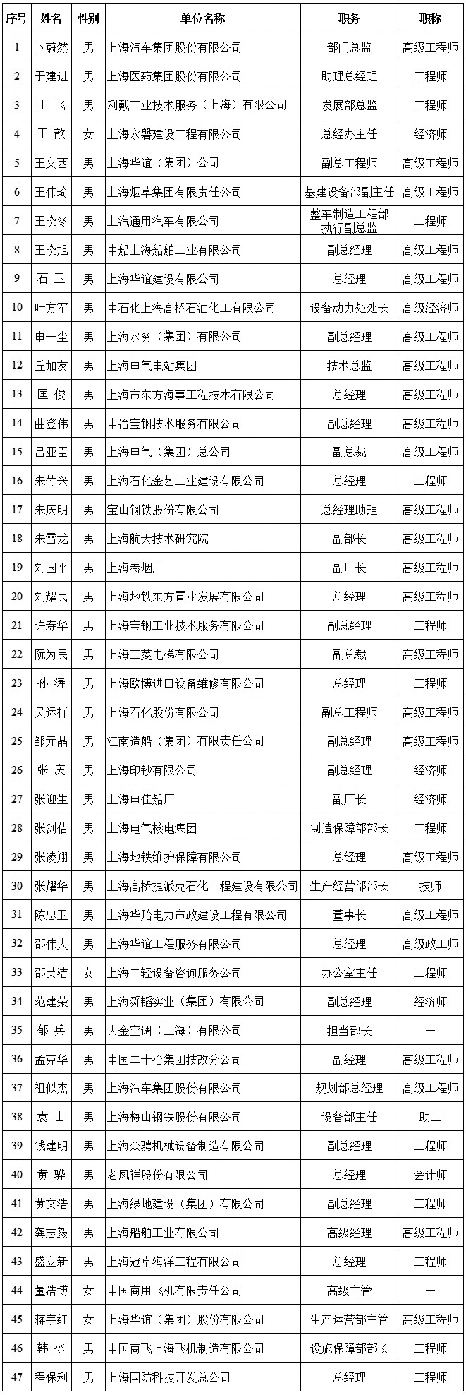 上海市设备管理协会第八届理事会理事、监事候选名单公示