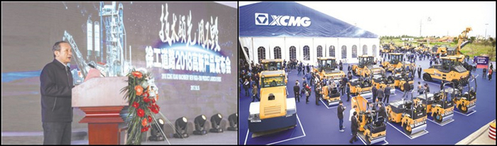徐工集团董事长、党委书记王民表示,徐工道路是一个“底蕴深厚、前途光明、任重道远、天道酬勤”的重要板块。十八大以来,面对经济新常态下的市场环境变化,徐工筑养护机械取得了长足发展,产品成套性和整体规模目前已在全球处于领先地位,压路机、平地机、摊铺机等主导产品连续保持国内行业第一位,大吨位压路机销量全球第一。他自豪地宣布,此次新品发布,将吹响徐工筑养护机械夯实中端、突出高新、高举高打的冲锋号角,在“三高一大”领域牢牢占据行业技术制高点。2020年之前,徐工还将陆续推出拥有原创技术的5系列(即第五代)成套道路机械高新产品,全面拉开与国内同行的领先身位,全力赶超世界行业标杆的先进水平。