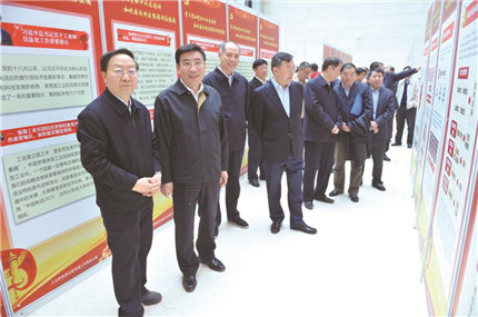 会议结束后,参会的部领导和各单位带队负责同志一同参观了由部党建工作领导小组主办的“学习贯彻党的十九大精神,加快建设制造强国网络强国”主题展览。图为部领导和各单位带队负责同志一同参观了由部党建工作领导小组主办的“学习贯彻党的十九大精神,加快建设制造强国网络强国”主题展览。