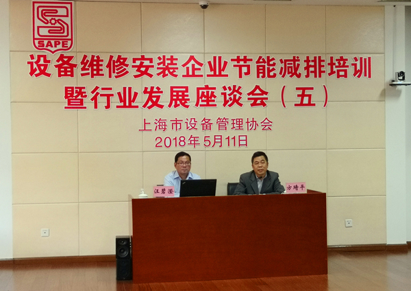 上海市设备管理协会于5月11日上午,在上海电气培训基地召开第五期“设备维修安装企业节能减排培训暨行业发展座谈会”。会议由市设协方琦平秘书长主持,市工经联咨询部项目负责老师和来自各设备维修安装企业的代表48人出席了会议。