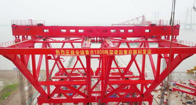 2018年7月5日,在江苏南通一家起重机制造基地,由我国自主研发全球首台1800吨架梁吊机整装待发,准备赶往由中铁大桥局承建的沪通长江大桥28号主墩“安家落户”。该架梁吊机整机自重1033吨,额定起重量1800吨,起吊幅度13m~22.15m,将肩负起世界上最大跨度公铁两用斜拉桥主航道桥整节段钢梁架设重任。 许丛军/人民图片