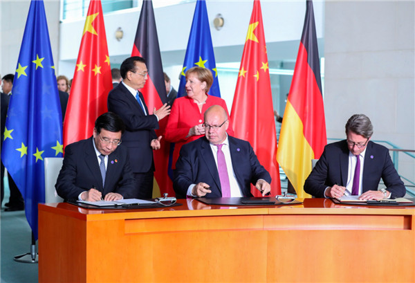 当地时间7月9日中午,国务院总理李克强在柏林总理府与德国总理默克尔共同主持第五轮中德政府磋商。磋商后,在两国领导人见证下,工业和信息化部部长苗圩与德国联邦经济和能源部、联邦交通和数字基础设施部代表共同签署了《关于自动网联驾驶领域合作的联合意向声明》。