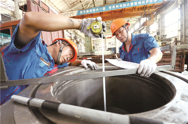 益阳橡机在持续改进质量,提升产品合格率,确保满足顾客要求上下功夫,积极开展工艺流程卡执行情况考核,以保证加工工艺技术的有效控制。在采购和外协质量上,加强关键件测量和监控,提高了质量管理的可追溯性。图为质检人员正在对铸造外协件平板硫化机油缸进行严格检测。(李中宏 摄)