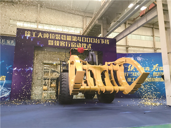 徐工大吨位装载机第4000台下线及侠客行出征,既是成就的总结也是新征程的开始,更是肩负着中国大吨位装载机技术更强、质量更高、规模更大的历史使命!装载机作为徐工三大板块之一,是战略发展的绝对重点,必将不负重托,努力发展自我,向世人呈现一个全球信赖、具有独特价值创造力的世界级企业!图为启动仪式现场。 中国工业报记者 焦钼茸 摄