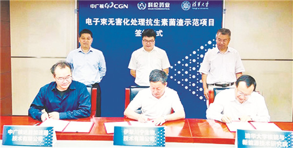 近日,中广核核技术发展股份有限公司旗下中广核达胜加速器技术有限公司与国家环境保护抗生素菌渣无害化处理与资源化利用工程技术中心(国家生态环境部依托伊犁川宁生物技术有限公司建设)、清华大学核能与新能源技术研究院在北京签订《电子束无害化处理抗生素菌渣示范项目合作协议》。