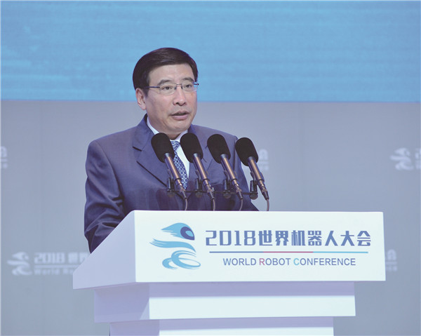 8月15日,2018世界机器人大会在北京开幕。工业和信息化部部长苗圩出席大会开幕式并作了题为《打造开放合作、共享共赢的全球机器人生态体系》的致辞。
