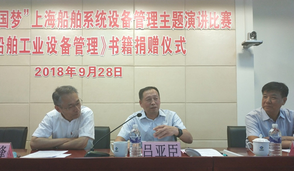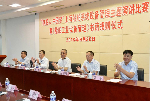 硕果累累的金秋到处透露着丰收的喜悦,金叶满树的秋色显得格外爽气宜人。2018年9月28日下午上海船舶系统“造船人•中国梦”设备管理主题演讲比赛暨《船舶工业设备管理》书籍捐赠仪式在上海电气李斌技师学院报告厅隆重举行。上海市设备管理协会会长吕亚臣、中船上海船舶工业公司党委书记高烽、副总经理王晓旭、上海市设备管理协会船舶工作委员会长徐平、上海市设备管理协会秘书长方琦平等领导出席会议。中船上海船舶工业公司副总经理王晓旭主持《船舶工业设备管理》书籍捐赠仪式。