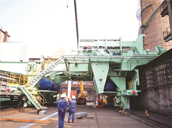 国庆期间,马钢炼焦总厂2018年度重点环保工程之一———新5号推焦车安装施工项目,正按照网络节点,不断向前推进。新推焦车显著特点是增加了炉台清扫、机侧除尘等环保设施,计划于11月中旬投用。届时,这个总厂5、6号焦炉的环保操作水平将得到进一步提升。与此同时,该总厂具有良好节能减排效果的南区筒仓工程,以及具有巨大环保效应的北区烟气脱硫脱硝工程,也将进入紧张的施工阶段。图为正在进行中的新5号推焦车安装现场。(李开庆 摄)