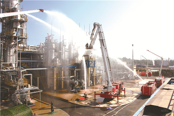 吉林石化公司消防支队日前在乙二醇装置区开展危险化学品火灾联合演练。本次演练充分利用3D消防模拟仿真推演系统对演练进行桌面推演,检验灭火救援方案和战术战法的可行性;利用卫星车、通讯指挥车、无人机等高科技消防装备,对火灾现场进行实时监控和数字化远程传输,为演练提供指挥通讯保障;组织辖区消防大队和增援力量进行实地演练,提高协调配合能力。通过采取“演、练、教、学”等方式,破解危险化学品火灾处置难点,进一步提高了危险化学品火灾应急处置能力。(张晓君 蒋邵华 摄影报道)