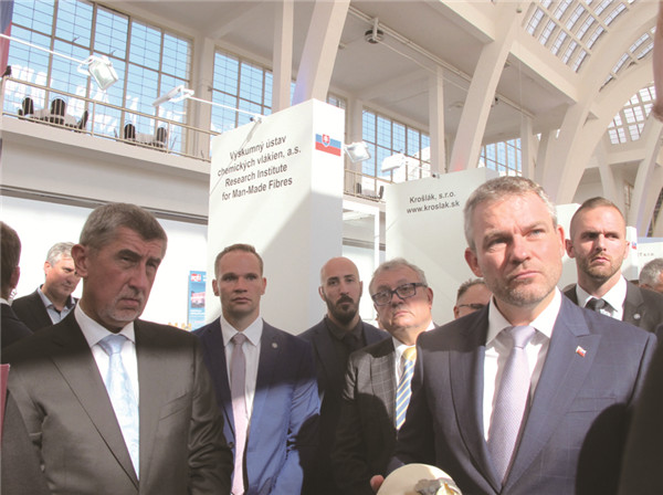 “60年来,MSV见证了捷克的工业成就。捷克的很多工业产品在国际上有很高认可度。以我们协会为例,50个会员公司中,80%的产品都是要出口的。”捷克机械工程技术联合协会总经理伯德易赫在接受记者采访时表示,当前,捷克更加重视科技和产业升级研究,同时借助展会、贸易出口等渠道积极寻求同包括中国在内的外国企业、研究机构的合作,以期实现互利共赢。图为捷克总理巴比什(左一)和斯洛伐克总理佩列格里尼(右一)共同出席斯洛伐克馆开馆仪式。