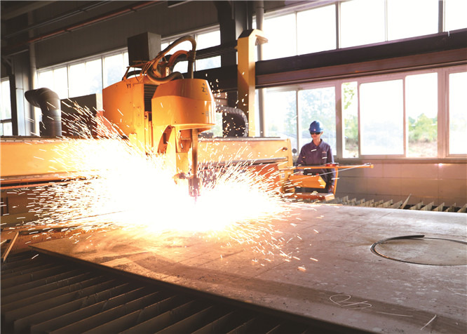 一块巨大的钢板,一团灿烂的火焰,一台高端等离子切割机,勾画出生产现场一幅壮观的图画。