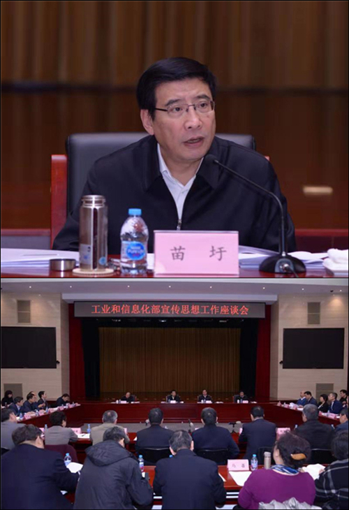 2018年11月15日上午,工业和信息化部召开宣传思想工作座谈会,深入学习习近平总书记关于宣传思想工作的重要讲话精神和全国宣传思想工作会议精神,研究部署部系统下一阶段宣传思想工作。部党组书记、部长苗圩出席会议并讲话,部党组成员、副部长陈肇雄主持会议,部党组成员、副部长王江平,部党组成员、总工程师张峰出席会议。
