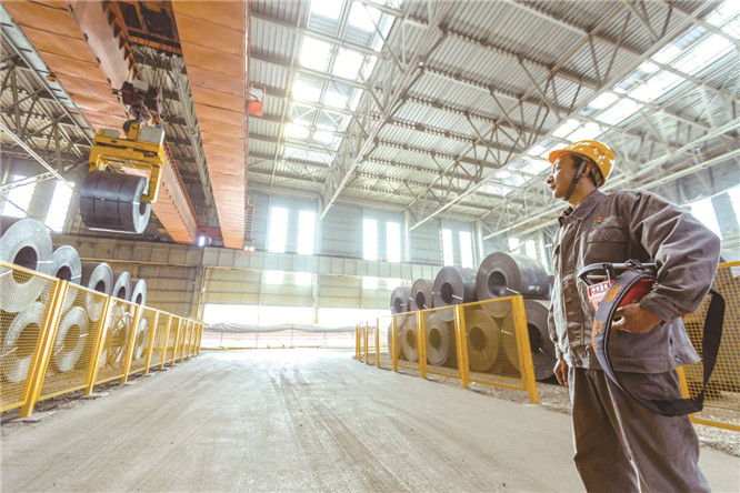 近日,由河钢唐钢自动化信息公司自主研发的“无人天车摆角控制系统”进行了试运行,效果良好。在此之前一直采用购买国外的成套技术,存在价格昂贵、购买周期长、维修困难,不能自主精确调整的缺点。该项技术的成功研发与应用,完全替代国外进口产品,提升了无人天车运行的稳定性和运行效率,每套成本降低10万元以上,该系统达到国际先进水平。图为河钢唐钢不锈钢公司无人天车正在吊运钢卷。(马雪磊 邱悦 摄影报道)