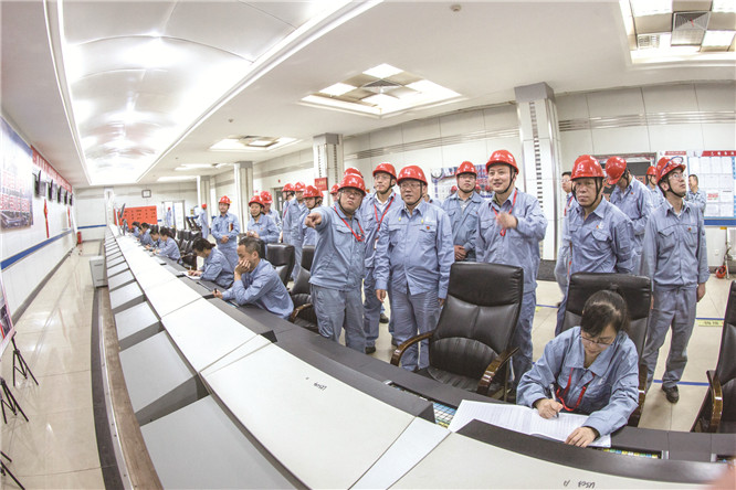 扬子石化公司积极推行全员5S管理,每月在基层试点单位举行一次观摩推进会,帮助基层试点单位找不足、提建议,相互取长补短,提出改进措施,固本强基,提升企业综合管理水平。图为5S管理人员在乙烯装置现场观摩。(李树鹏 摄)
