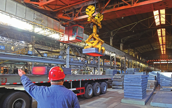 太钢不锈热轧厂针对产品质量问题实施“质量红线”管理办法,设立影响产品表面质量的设备功能精度红线41条,工艺质量红线25条,强化标准化质量操作,2018年以来返工品率下降3个百分点,研磨一次合格率提高了9%,工序服务质量和产品质量明显提升。图为太钢不锈热轧厂职工在保证工序质量的前提下进行钢坯吊运作业。(王旭宏 摄)