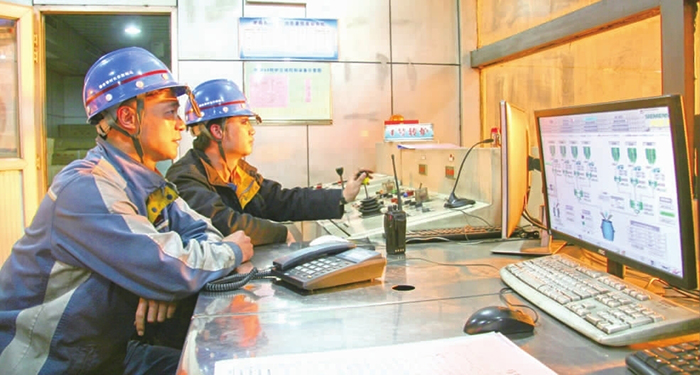 今年以来,马钢长材事业部炼钢分厂组织开展劳动竞赛,不仅为职工学习技术、相互交流搭建平台,也为人力资源合理配置创造条件。炼钢工们认真学习,取长补短,努力成长为能驾驭各种设备的复合型人才。为了冶炼优质钢种,他们通过电脑画面了解转炉铁水中各种元素的含量,若含硫量高就需要进行预处理脱硫,以达到钢种要求的范围,再用氧气吹炼。图为近日该厂炼钢工人正通过电脑MMI画面精心操作炼钢的情景。(陈刚 摄)