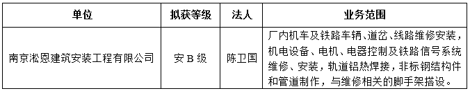 根据《上海市设备维修安装企业安全生产合格证等级评定办法》(沪设协(2018)5号),经上海市设备管理协会维修市场管理办公室评定,对南京淞恩建筑安装工程有限公司拟核发《上海市设备维修安装市场安全生产合格证》,为保证评定工作的公正性,增加工作的透明度,现将该企业拟获合格证的等级和业务开展范围等予以公示,以广泛接受社会监督。公示时间为:2025年8月26日至9月1日,如有不同意见,请在公示期间以书面形式将反映的情况寄(送)至上海市设备管理协会(邮寄的材料以到达日邮戳为准)。单位反映情况需加盖公章,个人反映情况需签署真实姓名,并留下真实的联系电话、地址和邮政编码。